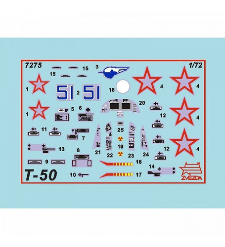 Zvezda , Una De Las Mejores Marcas De Modelismo En El Mundo Ahora En Mexico !! modelos De Plastico Para Armar Y Pintar! ¡ Zvezda Es Una Empresa 100% Rusa! !!!! Construye Tu Sueño!!!! sukhoi T-50 Russian Stealth Fighter item # 7275 ficha Tecnica: escala: 1/72 medidas (Largo ): 29.5 Cm numero De Partes:70 requiere Armado: Si requiere Pintado: Si incluye Pinturas Y Pincel: No incluye Pegamento: No edad Minima Recomendada Por El Fabricante: 12 Años. *Todos Los Productos Zvezda, Incluyen Instrucciones Graficas Con Indicaciones En Español! se Necesita Para Su Armado pinturas, Pegamento, Pinceles, Navaja De Modelista Y Herramienta De Modelismo *No* Incluido, Al Menos Que Este Especificado En La Ficha Tecnica! producto 100% Nuevo
