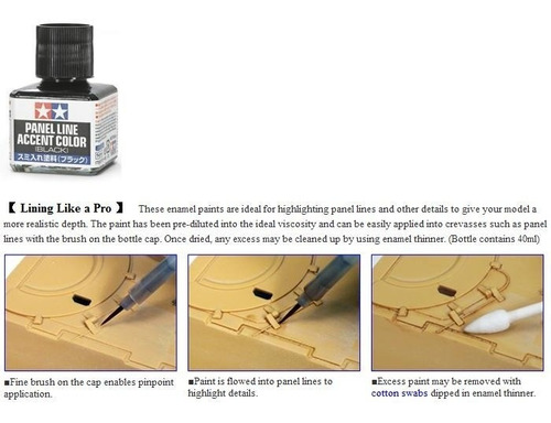 tamiya Panel Line Accent Color Grey ( Paneleador Gris) contenido 40Ml masilla O Resanador Especial Para Modelismo este Paneleador Diseñado Para Usarse En Modelos De Plastico,Es Para Asentar Las Sombras En Las Hendiduras
