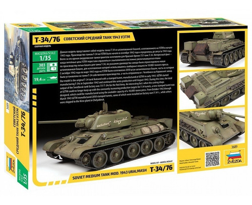 Zvezda , Una De Las Mejores Marcas De Modelismo En El Mundo Ahora En Mexico modelos De Plastico Para Armar Y Pintar! ¡ Zvezda Es Una Empresa 100% Rusa! !!!! Construye Tu Sueño!!!! t-34/76 Mod.1943 UralmashNitem # 3689 ficha Tecnica: escala: 1/35 medidas (Largo ): 19.9 Cm numero De Partes:303 requiere Armado: Si requiere Pintado: Si incluye Pinturas Y Pincel: No incluye Pegamento: No transfer De Agua ( Calcomanias ) Par Diferentes Versiones: edad Minima Recomendada Por El Fabricante: 10 Años. *Todos Los Productos Zvezda, Incluyen Instrucciones Graficas Con Indicaciones En Español! se Necesita Para Su ArmadoNpinturas, Pegamento, Pinceles, Navaja De Modelista Y Herramienta De Modelismo *No* Incluido, Al Menos Que Este Especificado En La Ficha Tecnica! producto 100% Nuevo!! Nsomos…… Trenes S.A. Atendiendo A Nuestros Clientes Desde 1974!!