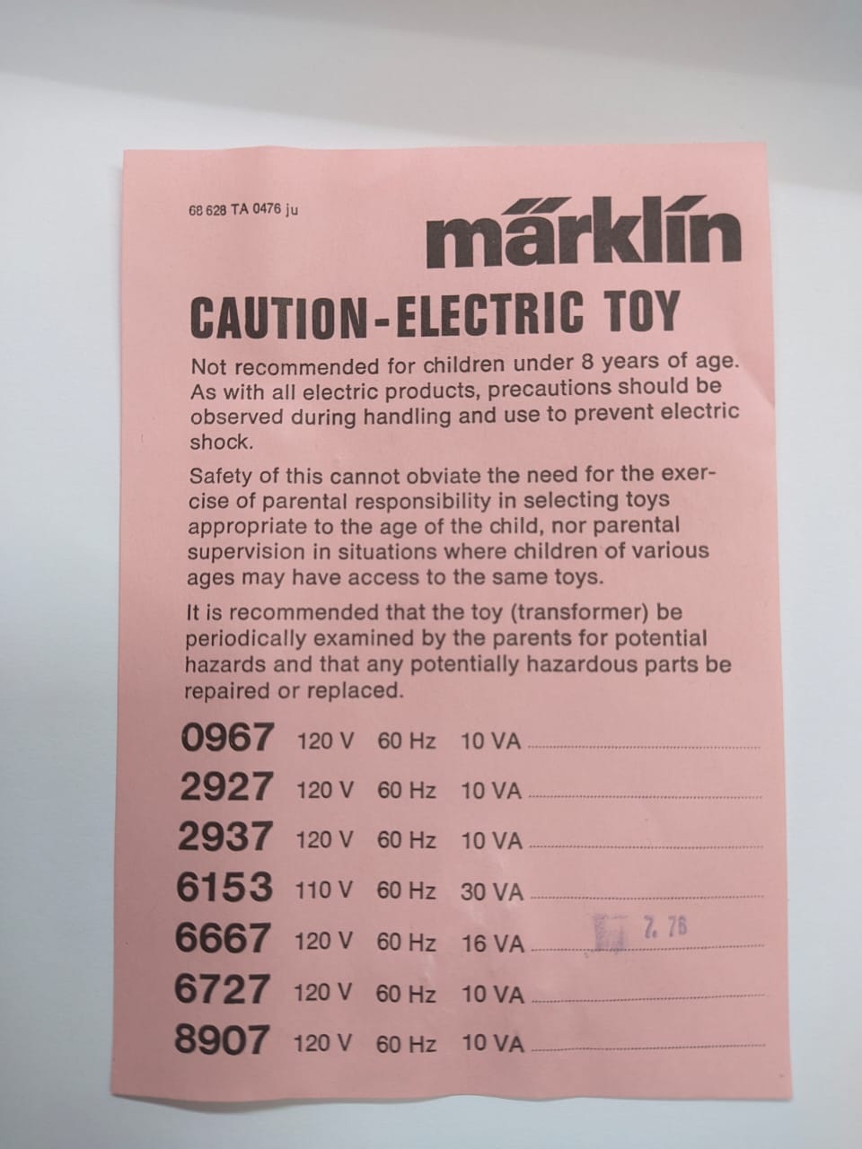 PARA SU USO EXCLUSIVO EN JUEGOS DE TREN MARCA MARKLIN DE CORRIENTE ALTERNA.